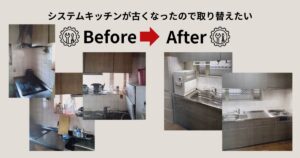 ご相談のきっかけ 以前、当社で売買の仲介をさせていただいたA様より、「システムキッチンが古くなったので取り替えたい」とのご相談をいただきました。仲介後もこうしてご相談いただけることは、大変ありがたいことです。 現場確認と …